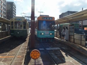 長崎市電、新旧そろい踏み。