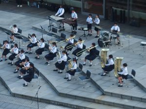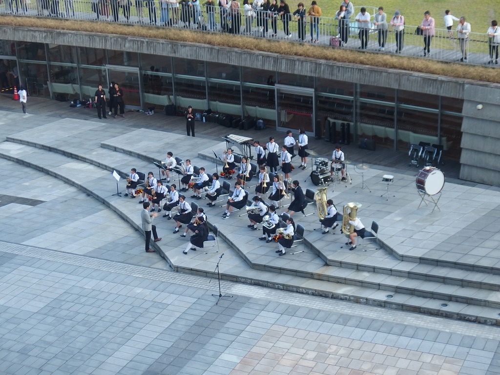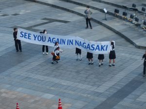出港のセレモニーは高校生の吹奏楽。
